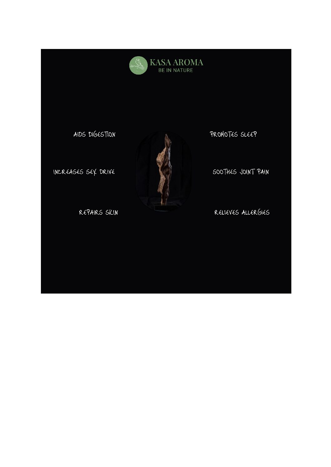 Agarwood has a rich, pleasant scent that has few or no natural counterparts. The aroma is primarily identified in its perfumed stage by a blend of “oriental-woody” and “very soft fruity-floral” elements. Amber (not to be confused with ambergris) and “shades of vanilla and musk” are further characteristics of the incense smoke. It also has a “sweet-balsamic” aroma.